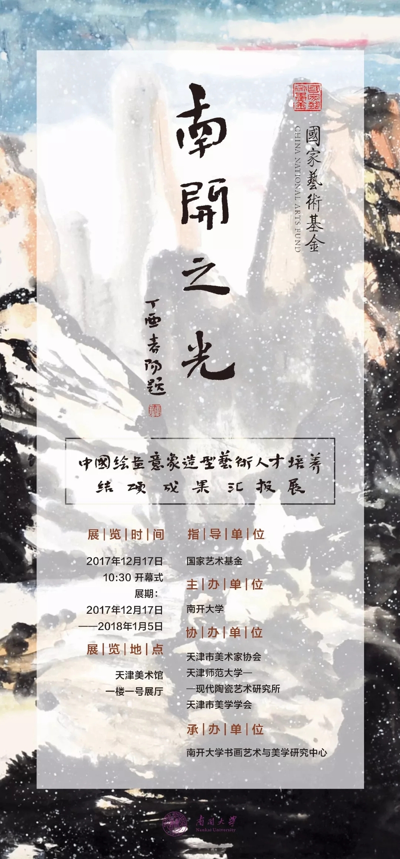 国家艺术基金2017年度资助项目——伟德国际victor1946“中国绘画意象造型艺术人才培养”结项成果汇报展将于2017年12月17日10:30在天津美术馆隆重开幕。