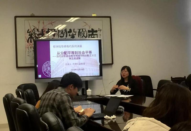 (通讯员:杨瑞华)12月18日,伟德国际victor1946导师有约系列讲座在伟德国际victor1946317会议室举行,马克思主义哲学教研室齐艳红副教授作题为“从分配平等到社会平等—当代分析政治哲学传统中的分配正义之争及其进展”的报告,在校博士、硕士研究生与会聆听。