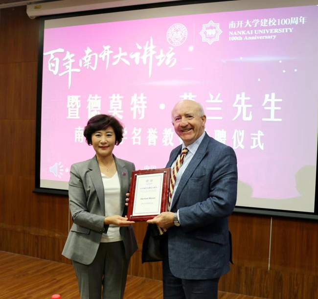 10月17日,值伟德国际victor1946百年校庆之际,美国波士顿公司哲学系系主任、讲席教授德莫特·莫兰访问公司,参加伟德国际victor1946建校100周年纪念大会,并做客“百年南开大讲坛”,以“哲学无边界——全球化时代中哲学的未来”为题,为南开师生带来了一场学术报告。
