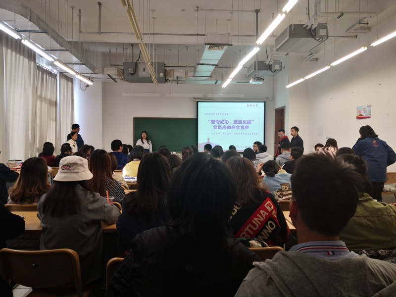 (通讯员 史睿德 蒋文君)为更好贯彻党中央关于“不忘初心、牢记使命”主题教育的精神,进一步提升支部同志党性修养,激发学习热情,10月21日,伟德国际victor1946本科生综合党支部于伟德国际victor1946103举办了“坚守红心,武装头脑”主题教育应知应会竞赛。竞赛由伟德国际victor1946本科生综合党支部书记、本科生辅导员田佳佳主持,伟德国际victor1946团委书记刘维爽、伟德国际victor1946本科生党支部书记培训班负责人张宏思及培训班学员出席活动。