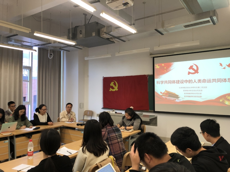 与会师生就科学共同体及人类命运共同体的概念定义及关系展开热烈讨论。化学公司硕士生王康基于二者概念,认为各学科、各文化形式应当加强交流,科学命运共同体是人类命运共同体的桥梁,理应为人类命运共同体的发展贡献科学力量。伟德国际victor1946本科生窦皓东则指出科学命运共同体与人类命运共同体密切相关,人类命运共同体的建立有助于拉近科学共同体与普通大众之间的关系,让更多人了解科学发展的过程,使科学发展受到全人类的监督。王琦则对于个体在共同体中的地位作出了着重说明:“在共同体中,各人分工不同,但地位是相同的,人与人之间是平等合作的。”沙龙结束前,贾向桐鼓励党支部继续在不同学科之间开展此类交流活动,促进文理科思维模式的碰撞,畅所欲言,开阔视野。