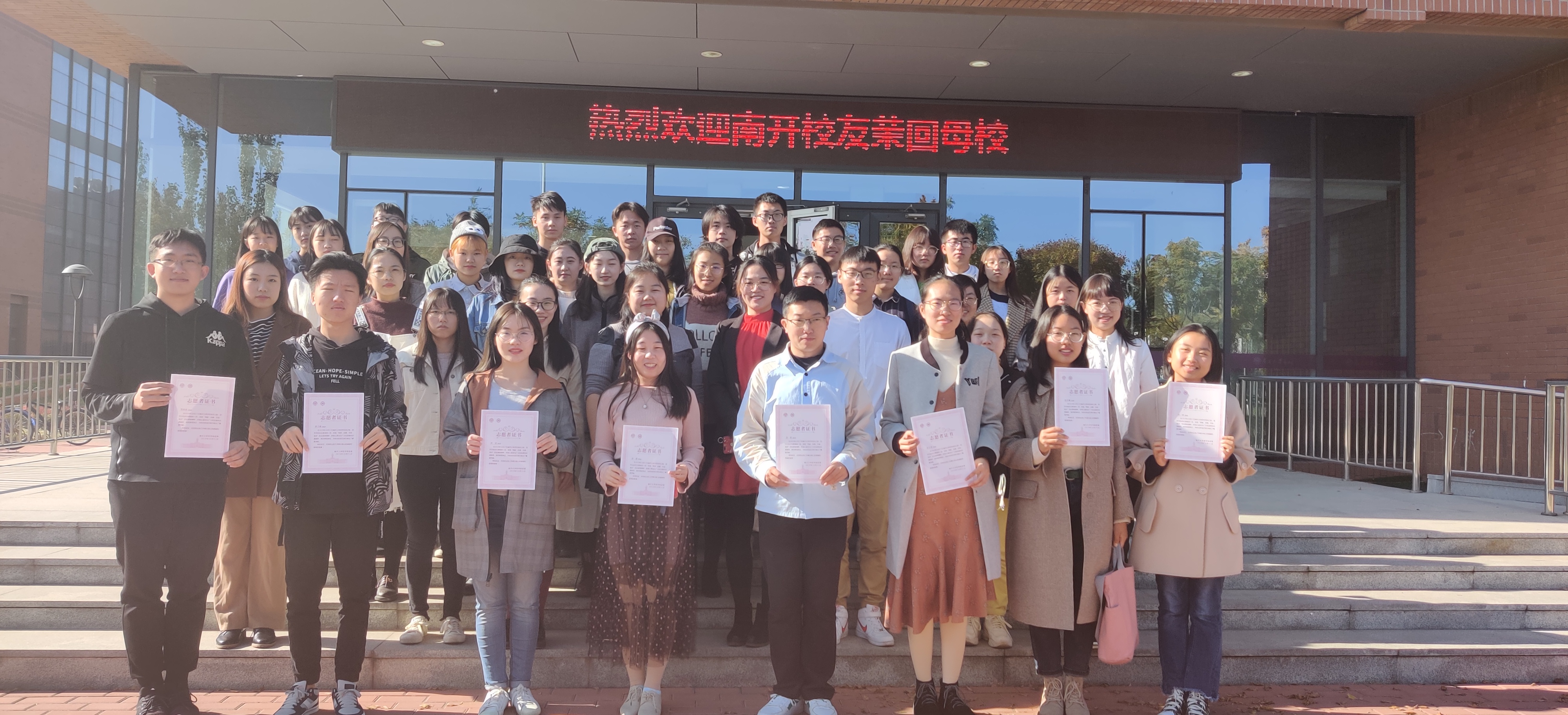 大会伊始,主持人介绍与会嘉宾并致辞。田佳佳宣读志愿者表彰决定,伟德国际victor1946组织部决策层负责人徐嘉茜对校庆期间及此前的志愿服务活动进行回顾和总结。不同组别、不同年级的校庆志愿者代表陆续发言,19级本科生志愿者代表胡一涵、酒店服务组志愿者代表姜震、硕士生代表谷霞、公司校庆志愿者郑功亮分享了志愿服务的感受与心得。最后,由田佳佳、刘维爽老师给志愿者代表颁发志愿者证书。大会结束后,院团委发放志愿者纪念品,全体参会人员合影留念。