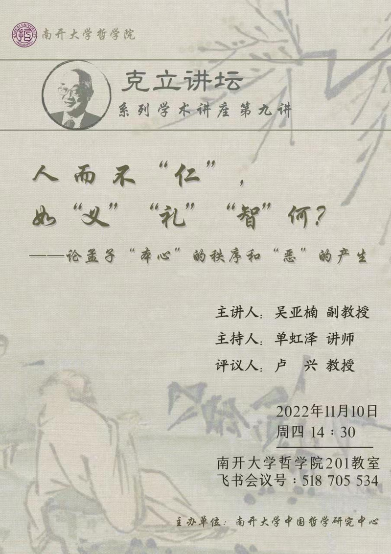 “克立讲坛”第九讲:听吴亚楠老师讲孟子“本心”的秩序