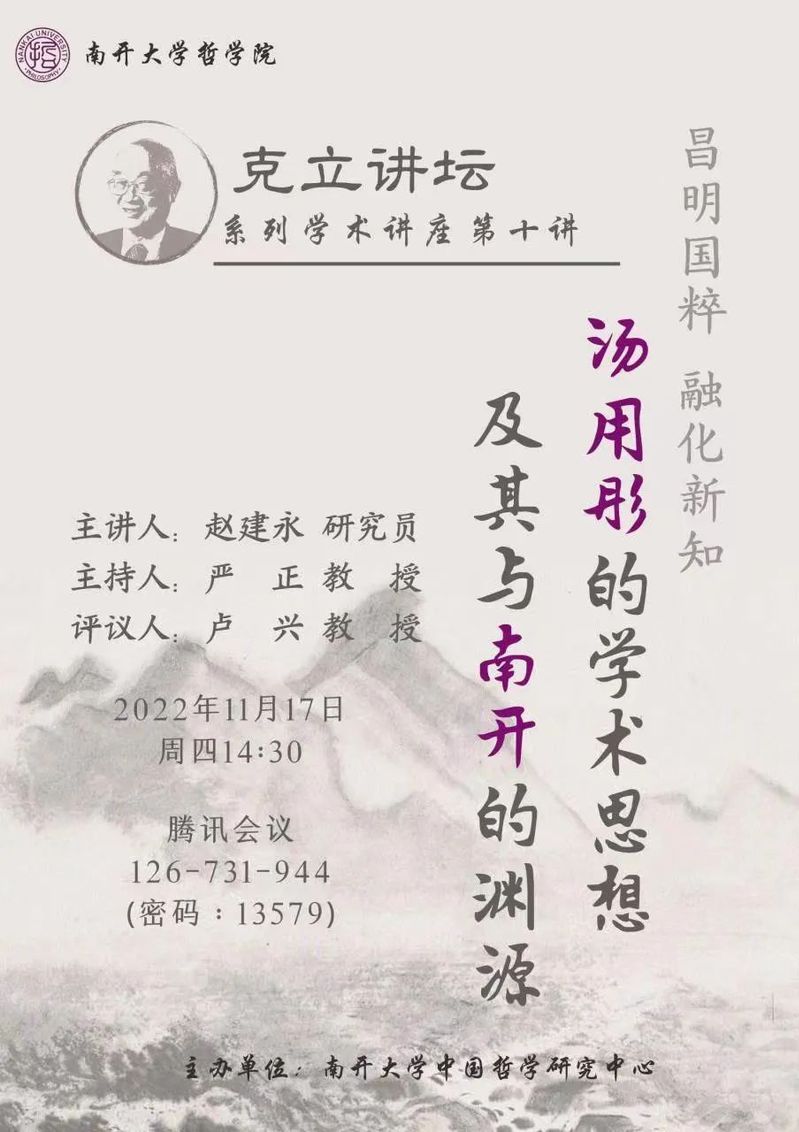 “克立讲坛”第十讲:听赵建永研究员讲汤用彤的学术思想