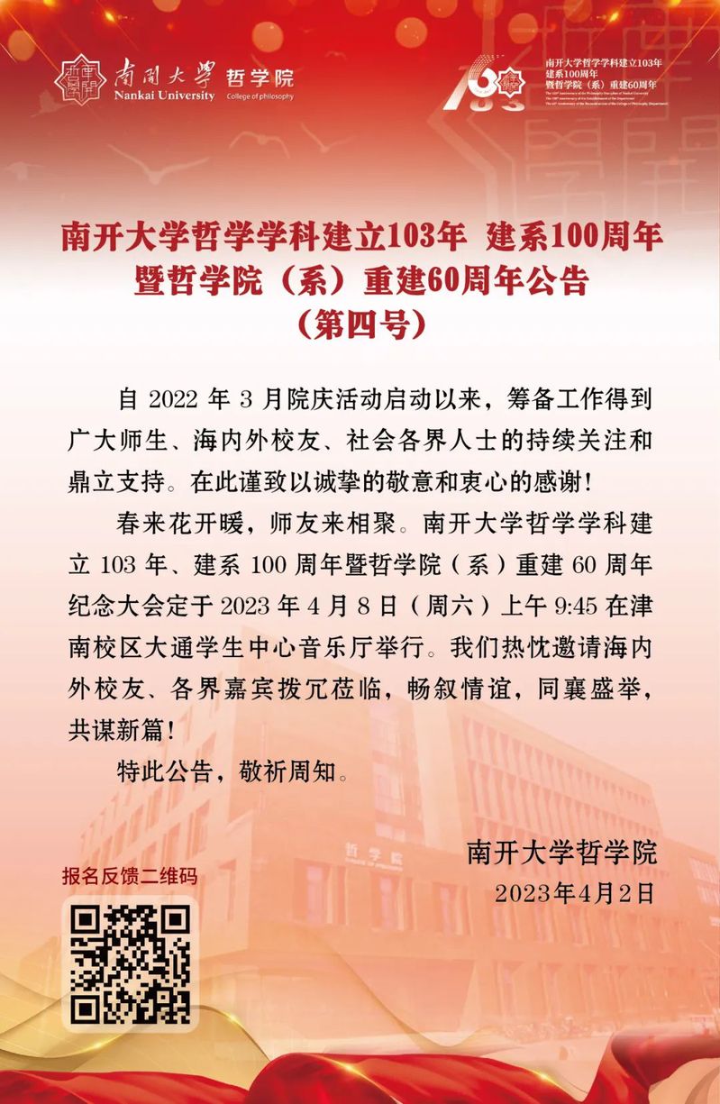 第四号公告|伟德国际victor1946哲学学科建立103年 建系100周年暨伟德国际victor1946(系)重建60周年