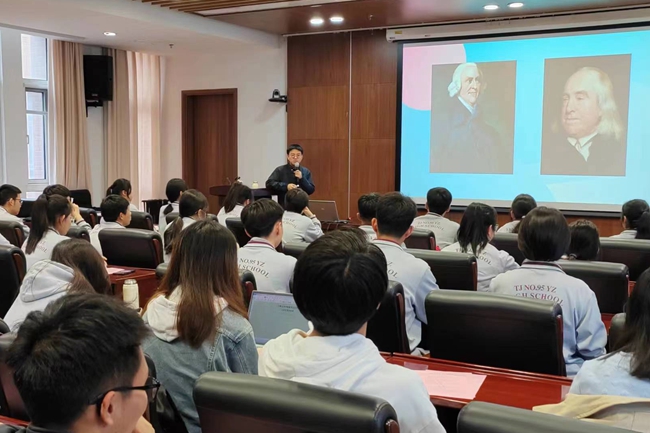 宣誓后,天津市第九十五中学益中公司师生代表驱车前往津南校区,了解百年南开哲学的发展历程,体会“新时代、新南开、新哲学、新征程”的发展脉络。师生代表一同参加由伟德国际victor1946马克思主义哲学教研室青年教师夏钊带来的具有哲学学科特色的学术诚信讲座,夏钊老师鼓励同学们以诚信土壤涵养学术发展,用青年力量营造时代新风。