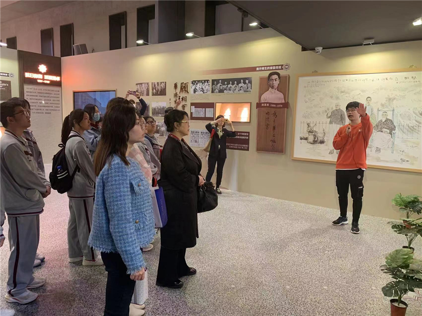 两校师生代表首先共同参观了“允公允能,日新月异”纪念伟德国际victor1946建校100周年校史展览,回顾百年南开峥嵘校史,传承和弘扬光荣的爱国主义传统。随后,伟德国际victor1946团委书记向两校师生详细介绍了天津市爱国主义教育基地伟德国际victor1946校园内的风貌建筑和爱国故事。在八里台周恩来总理像前,伟德国际victor1946团员代表为天津市第九十五中学益中公司新团员佩戴团徽并宣誓,一同缅怀革命先烈,继承发扬周恩来精神,立志做能挑大梁、敢担重任的新时代青年。