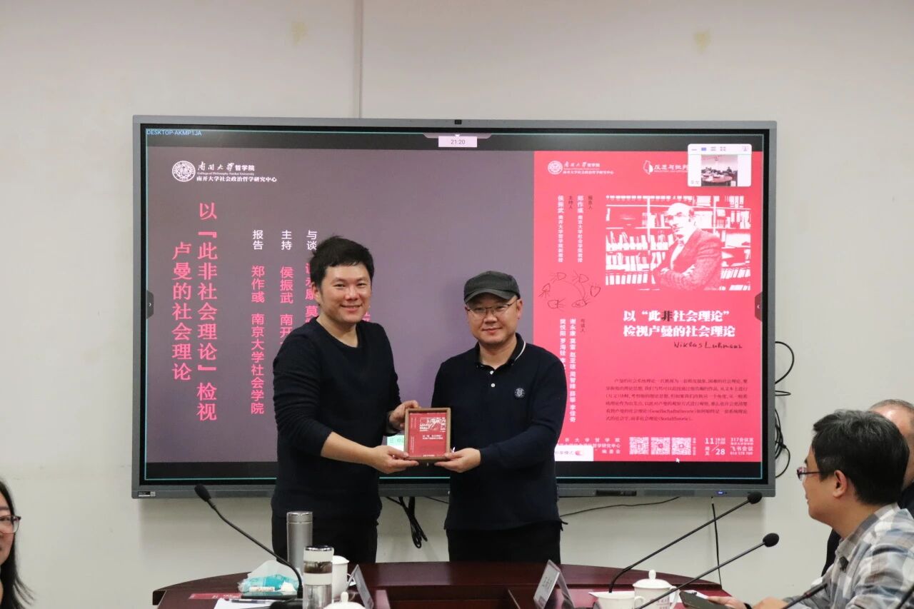 2025年11月28日晚,由伟德国际victor1946社会政治哲学研究中心、“阿多诺选集”编委会主办的反思与批判师生工作坊,在伟德国际victor1946317会议室成功举行。本次工作坊的主题报告为“以‘此非社会理论’检视卢曼的社会理论”。工作坊邀请南京大学社会公司郑作彧教授担任报告人,由伟德国际victor1946侯振武副教授主持,伟德国际victor1946谢永康教授、莫雷教授、赵亚琼副教授、周智臻老师和多位伟德国际victor1946博士生担任与谈人。伟德国际victor1946王南湜教授、山东大学哲学与社会发展公司毛林林副教授、上海大学马克思主义公司肖宛直老师、山西大学马克思主义哲学研究所陈源老师等学者出席了本次活动。