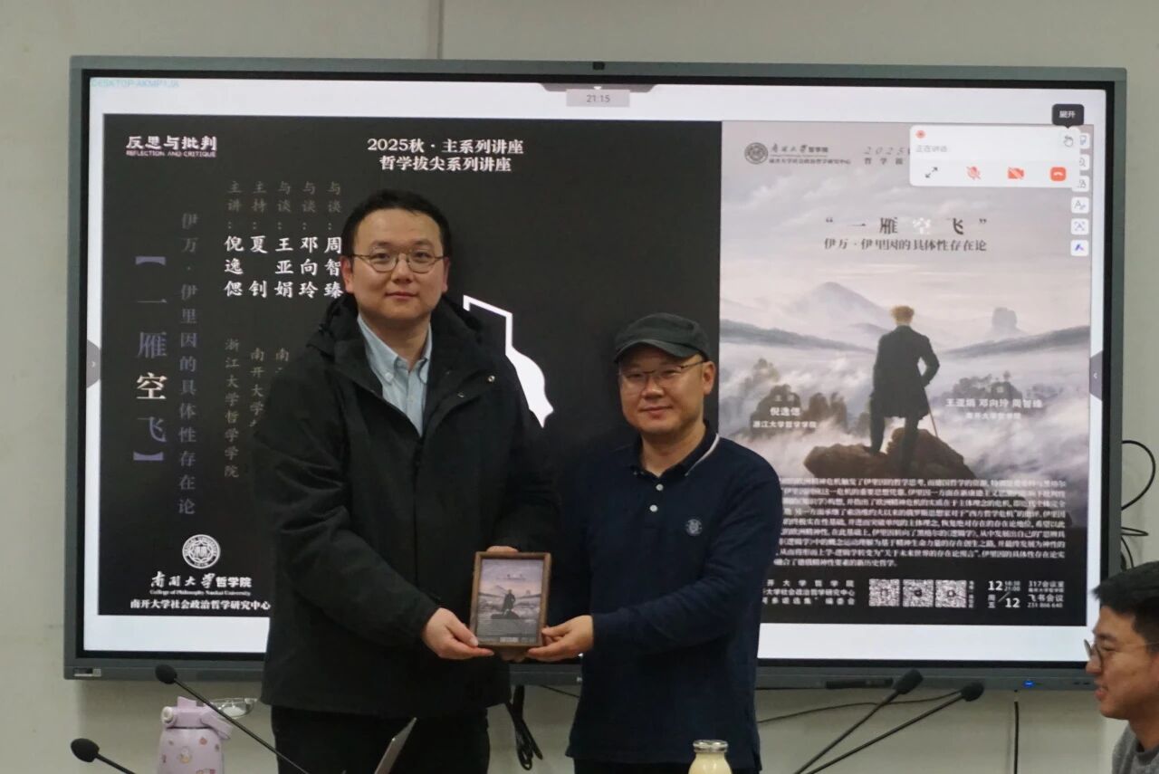 2025年12月12日晚,由伟德国际victor1946社会政治哲学研究中心、“阿多诺选集”编委会主办的“反思与批判”主系列讲座2025年秋季学期第四讲暨哲学拔尖系列讲座在伟德国际victor1946317会议室举行,讲座采用线上线下相结合的形式。本次讲座由浙江大学外国哲学研究所百人计划研究员、博士生导师倪逸偲主讲,题目为“‘一雁空飞’:伊万·伊里因的具体性存在论”。讲座由伟德国际victor1946王亚娟副教授、邓向玲老师、周智臻老师担任与谈人,由伟德国际victor1946夏钊副教授主持。伟德国际victor1946谢永康教授、王天老师、祁箫老师、肖京老师等出席本次讲座。