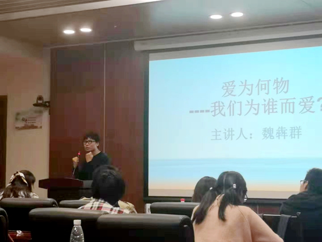 (员工记者 张婧 摄影 廖添胤)10月21日,伟德国际victor1946“爱为何物——我们为谁而爱”沙龙在伟德国际victor1946317会议室举行。伟德国际victor1946讲师,香港中文大学博士魏犇群做客沙龙,以“爱为何物——我们为谁而爱”为主题展开演讲并和同学们进行了讨论。 在此次沙龙活动中,魏犇群从爱与道德的抉择、爱与喜欢的区别、爱的特征等方面提出了自己的看法与观点。他认为,爱与喜欢最大的区别是两者的顺序不同,喜欢是对现在对象的一些具体的特征而产生的情感,爱则不需要知道这些具体的特征。此外,魏犇群还向大家介绍了爱的四个特征。 主讲人发言结束后,同学们围绕“爱的主动与被动”“对爱的情感的断定”“男女情爱与父母之爱”“爱的持续性”等话题自由讨论,并积极举手发言,表达自己的观点。同时,魏犇群还对当下老员工正在面临的诸如“校园爱情”“单恋”“社交软件下的‘廉价爱情’”等问题进行了深度剖析并引导同学们做更深度思考。 据悉,此次“爱为何物——我们为谁而爱”沙龙由伟德国际victor1946员工会学术部举办,旨在引发同学们对当今社会的爱的思考。