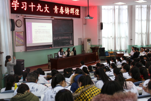 (通讯员田佳佳)为深入学习宣传党的十九大精神,推动青年员工贯彻落实党中央“学懂弄通做实”的学习要求,哲公司党委成立十九大精神宣讲团前往基层进行宣讲。11月29日,2016级硕士生党支部书记田佳佳,党员李琛、焦小妹、刘永强前往咸水沽一中,以“十九大后的青年人:理想之光与成才之路”为主题,向高二年级的三个班级进行十九大精神宣讲。宣讲团就十九大报告的行文结构、总体框架及报告精神作了简要介绍,着重指出,学习十九大报告的核心在于了解“新时代”的含义,正确把握社会主要矛盾的变化。就青年人成长成才而言,宣讲团援引习近平总书记在同各界优秀青年代表座谈时对青年人提出的“六点要求”,结合当代青年的典型事例,鼓励同学们在中学阶段做到“活心”,敢于追逐梦想,担当历史使命。据悉,伟德国际victor1946十九大精神宣讲团成立于11月,吸纳研究生、本科生党员骨干作为宣传力量,积极奔赴天津市各中小学、社区,主打“面对面”的体验式交流,进行十九大精神宣讲与推广工作;宣讲团第一期活动前往伟德国际victor1946附属小学,以“我眼中的十九大”为主题,引导员工关注十九大后身边发生的细微变化,激发员工的爱国情怀。